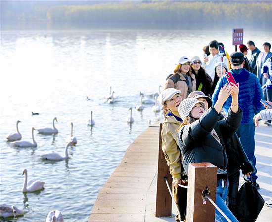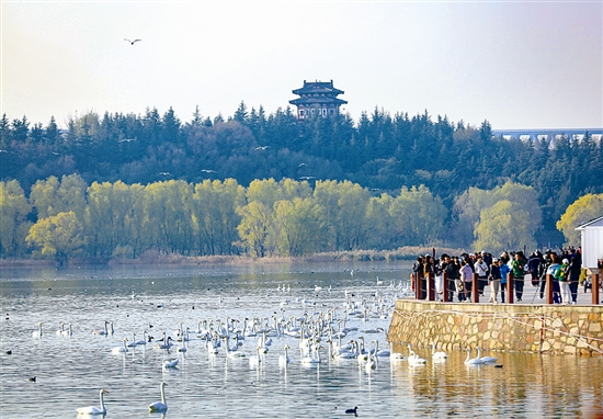 11月30日,三門峽天鵝湖國(guó)家城市濕地公園游人如織,各地游客與攝影愛(ài)好者慕名而來(lái),共同邂逅冬日限定的“天鵝舞”。 時(shí)值天鵝觀賞旺季,成群的白天鵝如約飛抵三門峽黃河濕地,或在澄澈的水面嬉戲游弋,或舒展羽翼低空盤旋,潔白身影與黃河岸線相映成趣。游客們紛紛駐足觀賞、拍照留念,用鏡頭定格人與自然和諧共生的美好瞬間,沉浸式感受黃河濕地的生態(tài)魅力與獨(dú)特韻味。 本報(bào)記者 孫猛 攝 ( 編輯:tln ) |