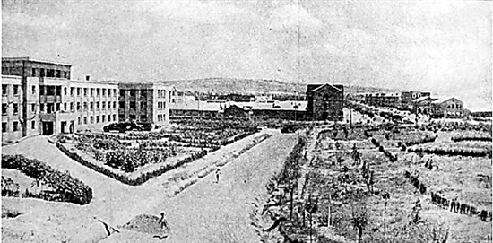 ![]() 20世紀60年代初的三門峽市區(qū),圖中左側(cè)建筑為中國水電十一工程局辦公大樓,門前道路為黃河路。