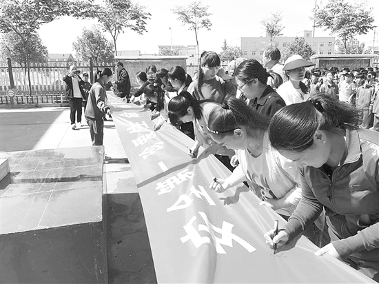 為增強(qiáng)全鎮(zhèn)師生防溺水意識(shí),切實(shí)保證學(xué)生的生命安全,5月2日,澠池縣張村鎮(zhèn)中心學(xué)校開(kāi)展了一系列防溺水主題教育活動(dòng)。圖為該鎮(zhèn)中心小學(xué)全體學(xué)生在進(jìn)行珍愛(ài)生命、預(yù)防溺水主題簽名活動(dòng)。 劉有學(xué) 攝 ( 編輯:cll ) |