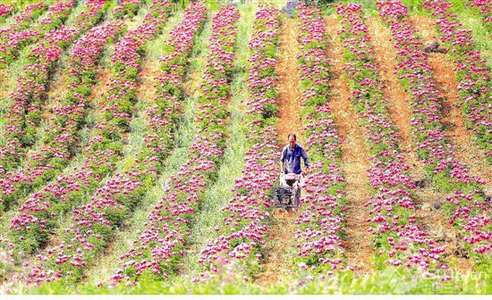 ![]() 5月18日,盧氏縣官道口鎮(zhèn)耿家村豫西百草園芍藥種植示范園內(nèi),一位農(nóng)民用微型除草機(jī)給芍藥除草。