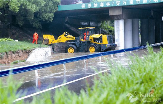 ![]() 8月22日,在連霍高速三門峽西出入口,工作人員對道路兩旁積水進行疏導,確保過往車輛安全暢通。