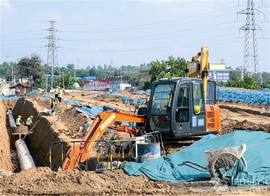 ![]() 8月25日,在市區(qū)北環(huán)路東延道路打通工程工地,工人正加緊道路建設(shè)。