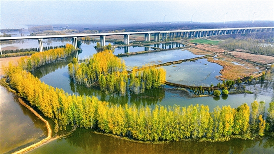 11月7日,黃河靈寶市函谷關(guān)鎮(zhèn)孟村段,水清天藍(lán),群鳥翩飛,勾勒出一幅美不勝收的冬日畫卷。 段景波 攝