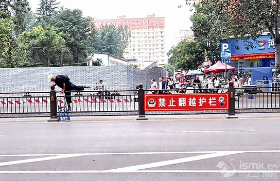 這一跨,文明盡失、危險至極。圖為記者近日在三門峽市區(qū)崤山東路拍攝的畫面。 本報記者 攝